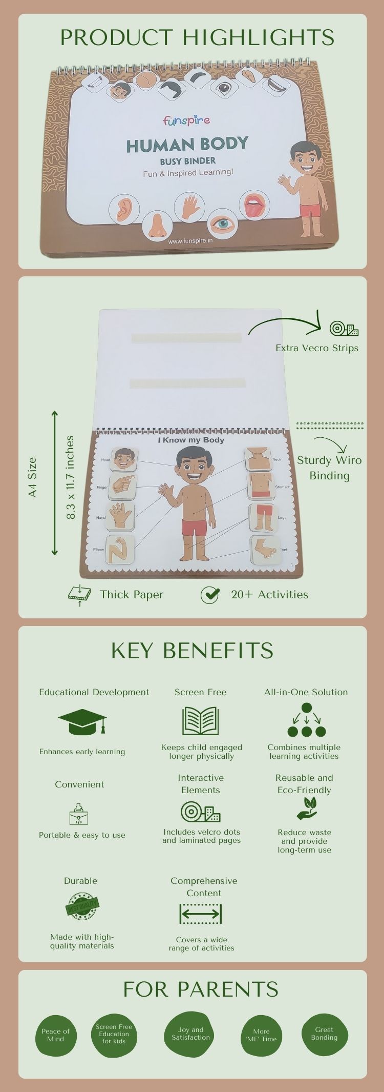 It is the perfect time to know human bodies! This Engaging BUSY BOOK keeps your Little Learner Busy!