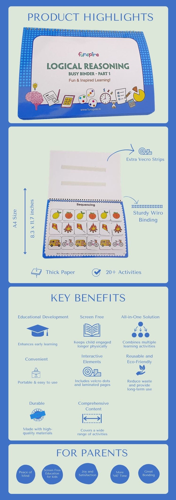 Busy Binder promotes cognitive growth, fine motor skills, problem-solving abilities, and creativity. It’s also designed to encourage screen-free engagement, which helps with focus and reduces screen dependency.