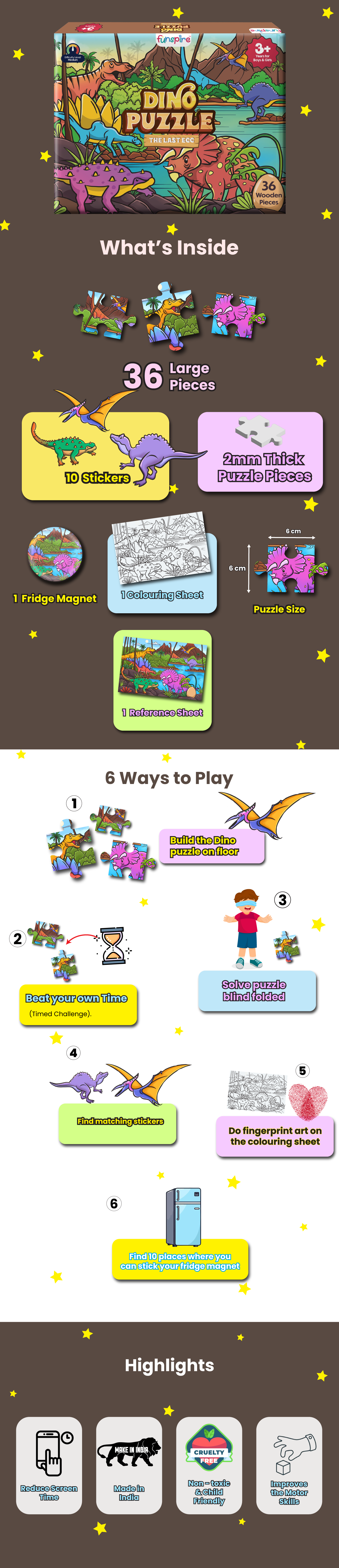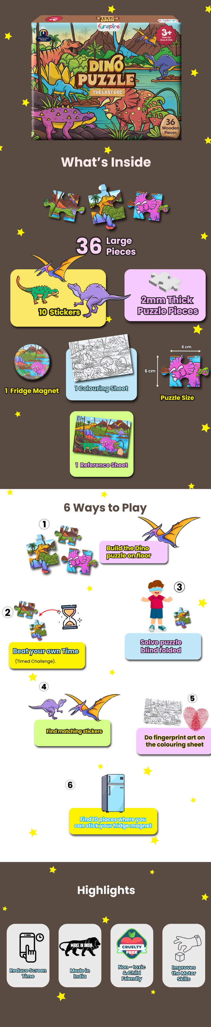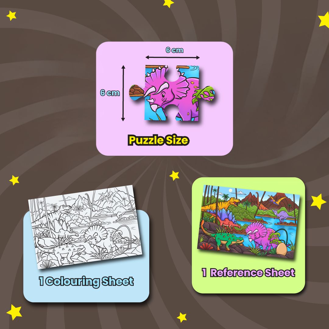 - 38-Piece Dinosaur Puzzle: Piece together a captivating image of a mighty dinosaur!